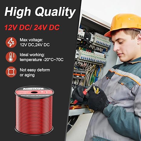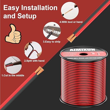 - High-quality 16 Gauge Wire: AIMIXUN 16 gauge stranded wire with spool and have 2 Conductor Parallel Wire, Black and Red each color 150FT. The spool allows the wire to be easily cut and stored for greater convenience when in use. The jacket material is flexible and environmental friendly PVC, which can be twisted and extended it freely as you like. 16 gauge wire only need 0.2 US dollars per feet, which can save you more money and give you a better life.