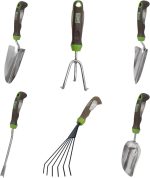 - INCLUDES: Hand Trowel, Hand Weeder, Hand Rake, Hand Transplater, Hand Scoop & Hand Cultivator