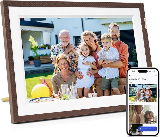 ARZOPA WiFi Digital Picture Frame 10.1″ HD IPS Touch Screen Smart Photo Frame Electronic Free Arzopa App Custom Picture Frame for Gifting Easy Share Unlimited Photos Videos from Anywhere – D10 Brown