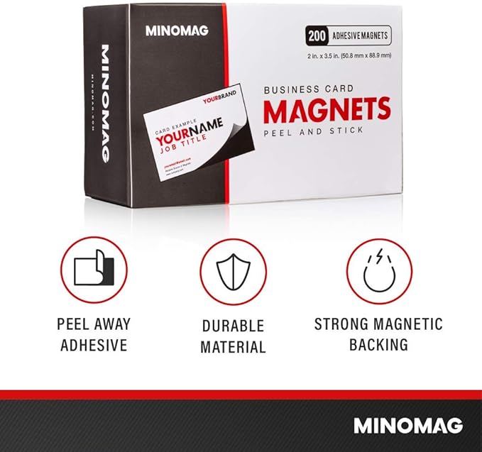 Business Card Magnets (Box of 200) | Peel and Stick Self Adhesive Magnetic Backings, 3.5 inch x 2 inch