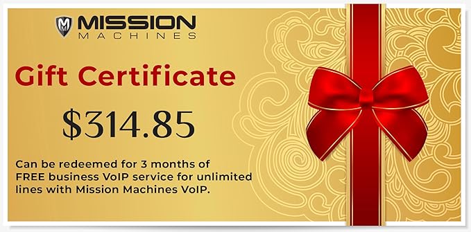 • Plug & Play system. This system is preprogrammed to work once plugged to your network (wired or wifi connection). Port your existing phone number or we will assign a number for you. When using ‘Mission Machines’ VoIP service, you will benefit from a free three-month VoIP service for 3 lines valued at $104.95 per month (total offer value is $314). If needed, add lines @ $25/per line per month. Unlimited calling to the US & Canada included. No contract required, cancel anytime.