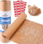 Honeycomb Packing Paper 15″x131′ – Bubble Wrap Eco-Friendly Alternative, Recyclable Cushioning Material for Shipping, Moving & Small Business Packaging Supplies with 20 Fragile Sticker Labels