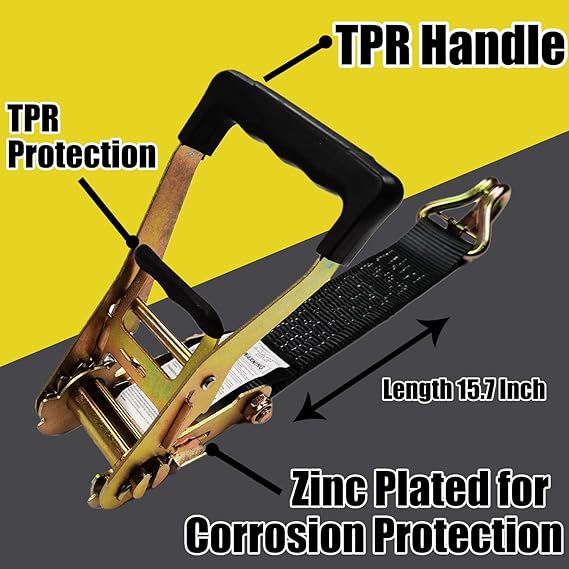 • RATCHET, J-HOOKS, D-RINGS – All with Zinc Plated for Corrosion Protection.TPR Handle Ratchet Won’t Hurt Your Hands, More Labor-Saving and Durable. J-Hooks with Safety Clip Prevents Slipping from The Anchor Point During Assembly.