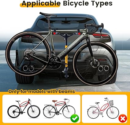 - Compatibility Note: Please note that our 50025 Bike Rack is designed for bikes with a horizontal top bar frame. For different style bike frames, the addition or installation of a horizontal crossbar may be necessary (not included)