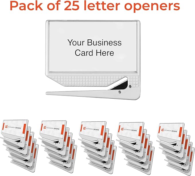 Uncommon Desks Business Card Letter Openers – (25 Pack) (White) Professional Letter Openers with Business Card Insert, Perfect Promotional Item for Business